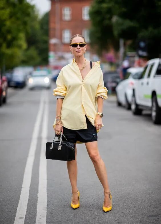夏天穿男朋友衬衫搭配短裤,诠释着女人的休闲,随性,独立自信的种种姿态,非常的经典好看(男朋友衬衫指版型很宽松且很大的衬衫,现在流行的一种叫法)
