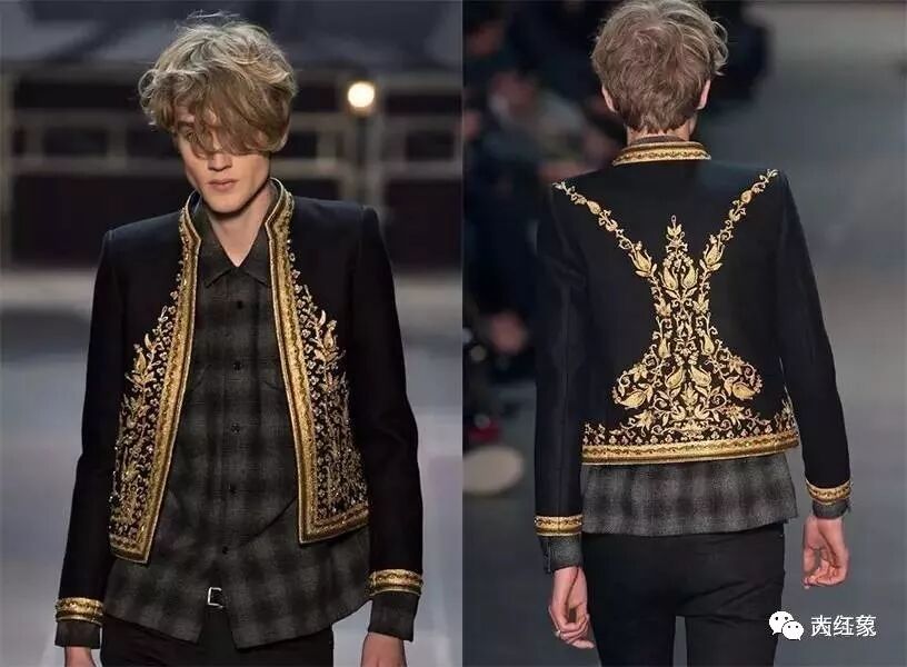 你们看,秀场上也是这样顺色穿格子衬衫的。即使外面那件是很花的刺绣外套,也不显得杂乱。