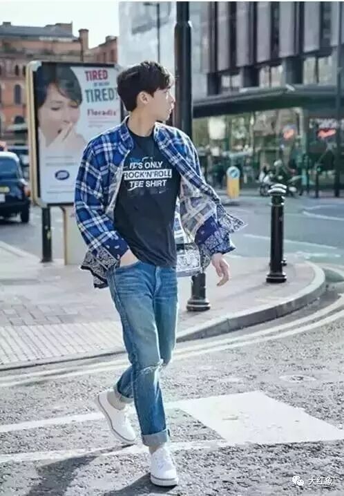 一个特简单特简单的衣品升级方法是里面穿一件纯色的T恤(最好是黑白灰好),然后把格子衬衫套装外面,记住不要系扣子。下面穿牛仔裤、工装裤都可以。敞开穿可以让人在视觉上拉长,显得更瘦更高哦~