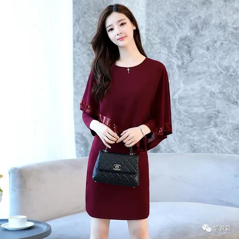 这款连衣裙,不用减肥都能穿,V领设计凸显颈部线条,妈妈或者婆婆穿上超显年轻,高贵大方的颜色,颜色也很搭。秋冬季新款女装披风雪纺连衣裙
