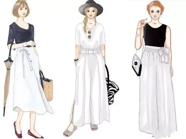 18、夏天很适合经典的黑白配,黑白永远都不会过时,如果我们不知道该怎么穿怎么配色时,那就选择最简单的黑白颜色吧,一定不会出错的。黑色棉T搭配白色半身裙,简约优雅,无论是上班还是约会,这样穿都很吸引眼球。