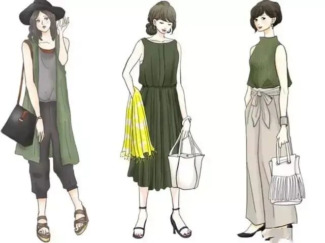 12、肤色黄黑的女生不是很适合穿墨绿色,可能会显得肤色更加暗淡,如果真的是非常喜欢的话,我们可以选择稍稍露肤一些的款式,比如墨绿色无袖连衣裙,尽可能选择大领的设计,这样的款式不至于显得肤色太暗。