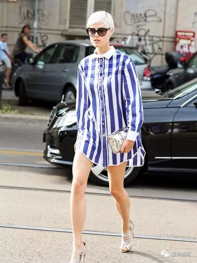1.oversized衬衫单穿众所周知近年来时尚圈流行穿“大”不穿“小”,毫无疑问oversized的长款廓形衬衫是今夏最炙手可热的流行单品之一。宽松的oversized衬衫一般长到大腿甚至是膝盖处,其实直接单穿效果反而是最出彩——既能够充分拉长你的腿部线条,也能够打造出一种随性不羁的慵懒范,时髦得全不费力。