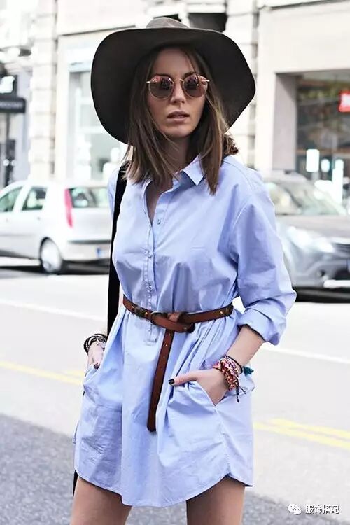 本来就很长的衬衣裙,你可以将它简单的套穿,也可以加一条腰封,勾勒出身体曲线,而且今年各种宽腰封尤其时髦呢。