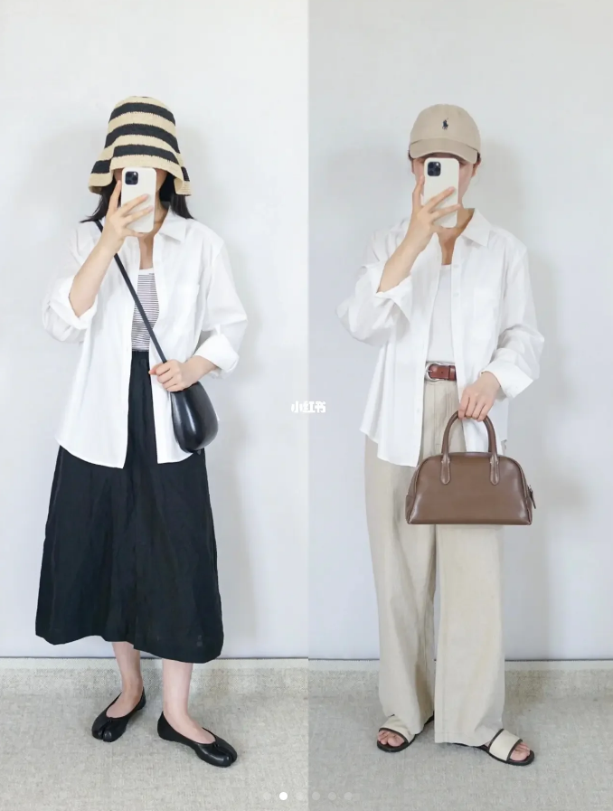 等到温度升高以后白色衬衣搭配裙子和阔腿裤也非常漂亮