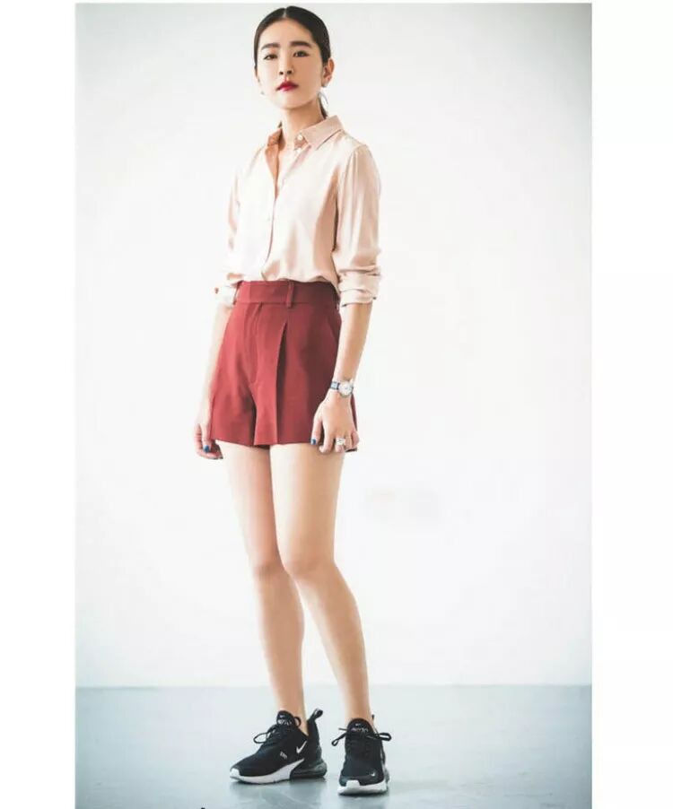 A:虽然周围的人都说我很喜欢穿着比较露肌肤的衣服。但我也有自己的一套准则,就是要注重整体的美感,已经露出了双腿的话,就不要再露出上半身。短裤喜欢选择设计感强一点的单品。