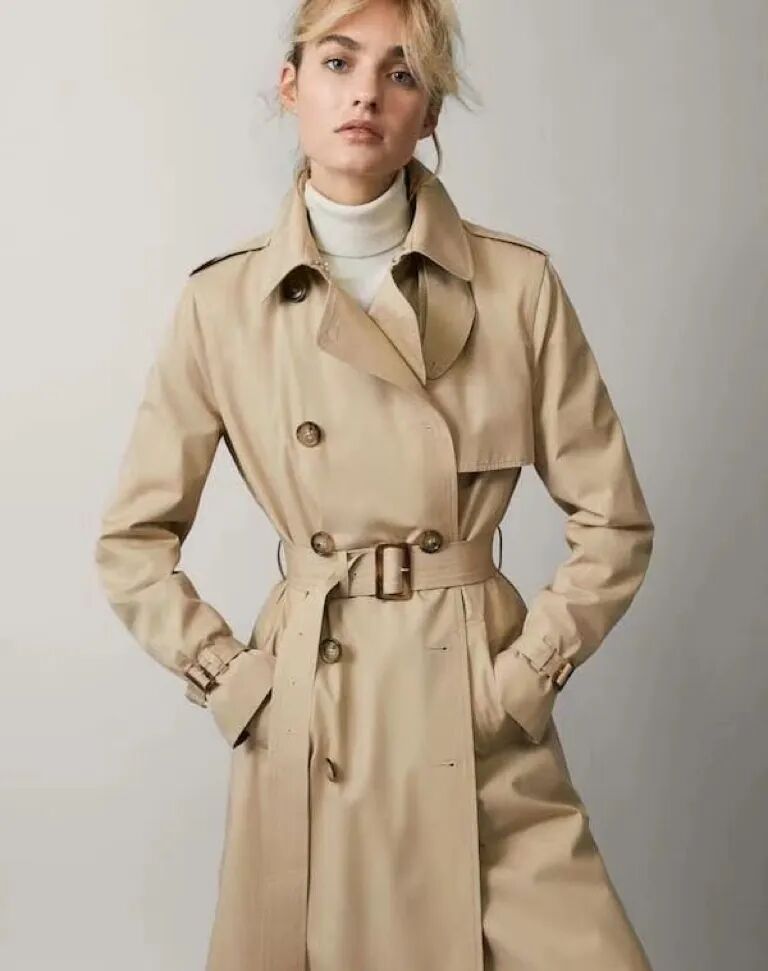 (上图)和上一件风衣相比款式几乎一样,但是因为面料不佳而使穿着者气质大打折扣。整体气场显得过于小气、拘谨,不上档次。