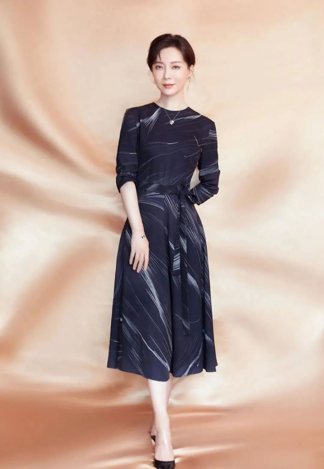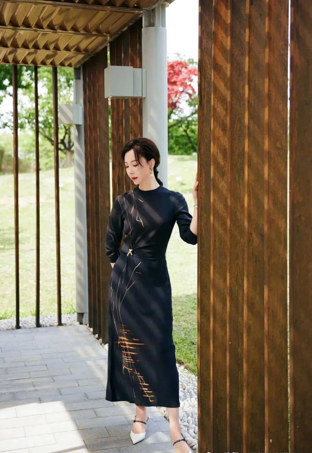 女人进入中年难免会伴随着发福长胖的现象,同时手臂的赘肉也会增多。这时候选择一件中长袖的连衣裙就可以起到遮挡手臂赘肉的效果。陈数身穿的黑色连衣裙看似简约,但加上大理石般的花纹,简约而又不俗气,腰间的腰带拉长腿部比例的同时又显优雅大气。