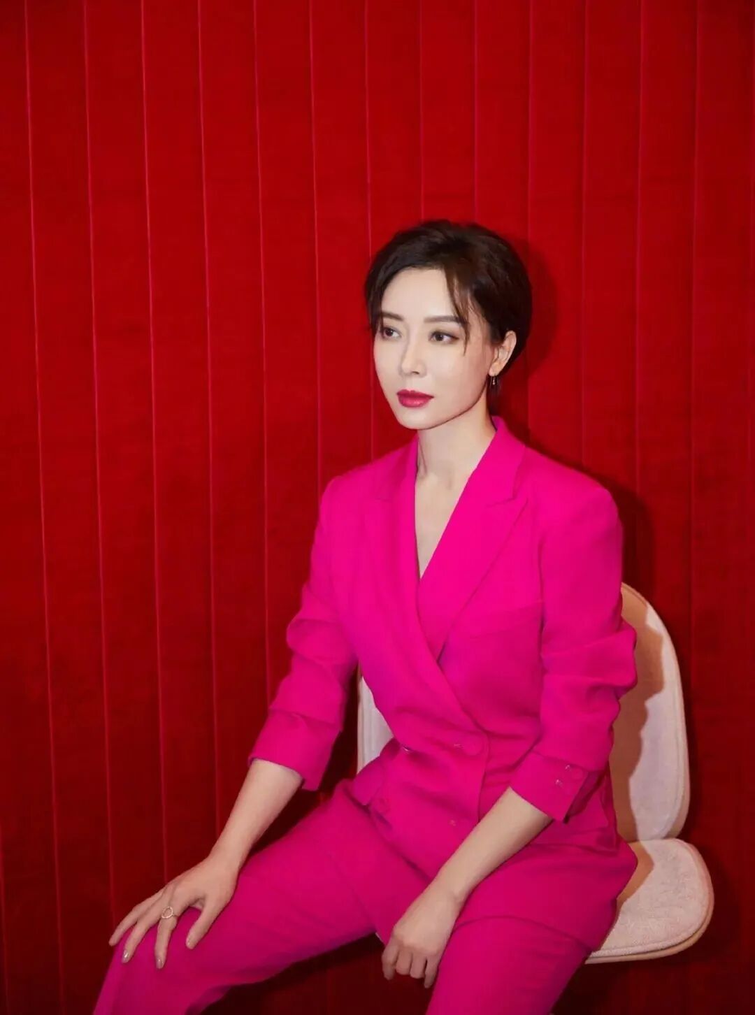 陈数简单的一套玫红色西装,加上低V领的领口,展现小性感的同时又完美演绎了女性的魅力,简直就是穿搭典范!