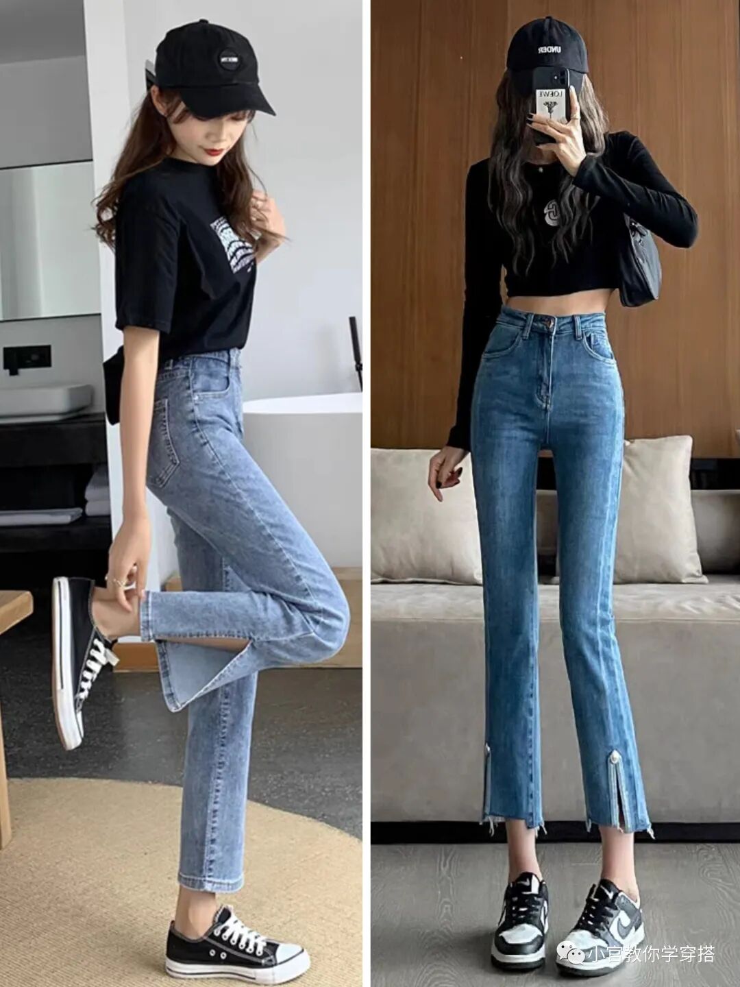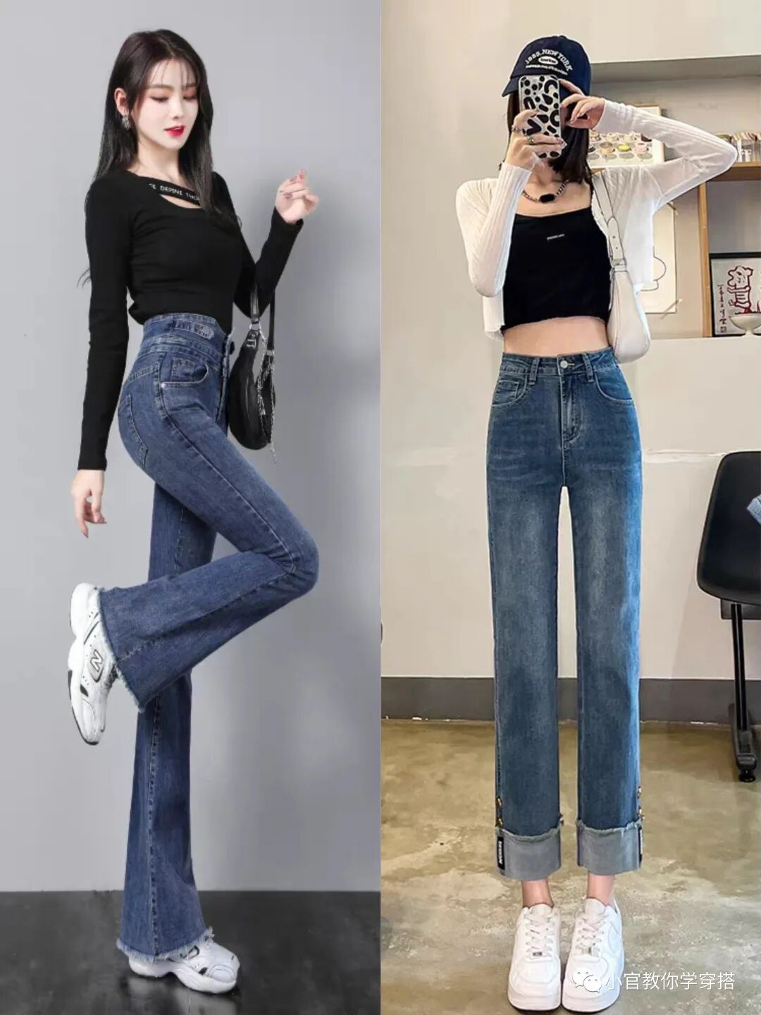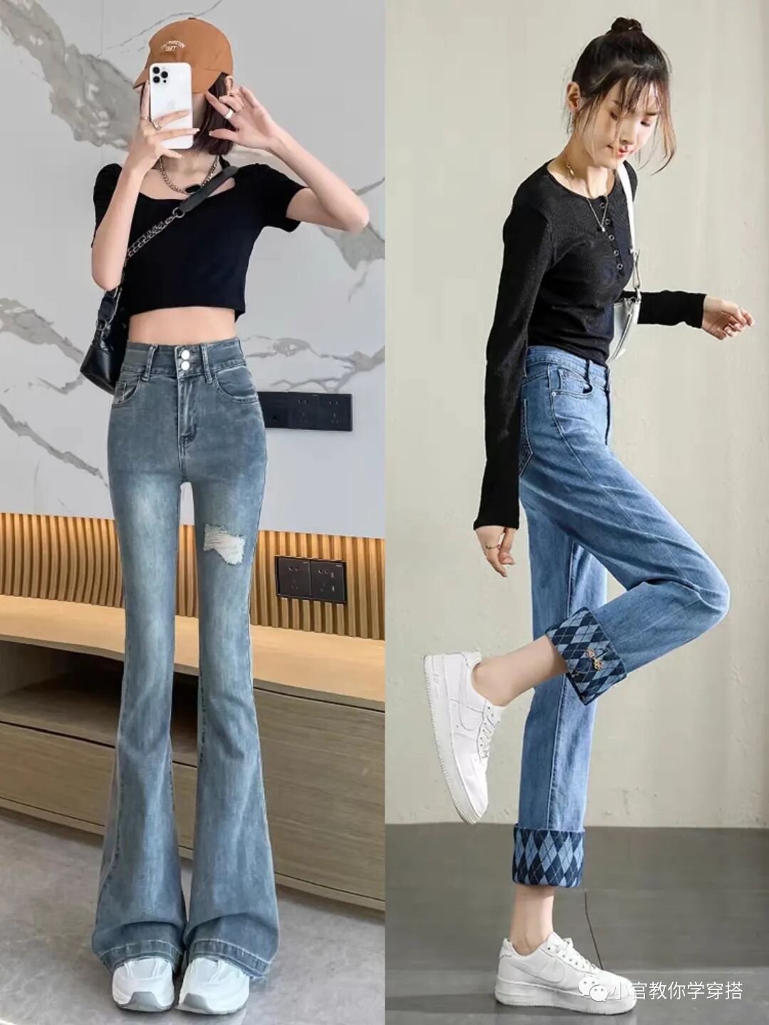 在选择牛仔裤时,要根据自己的身材和风格选择合适的款式的牛仔裤。例如,直筒裤适合任何身材的女生,能够展现出干练的气质;紧身裤能够突出腿部线条,适合身材匀称的女生;而阔腿裤则能够遮盖大腿较粗的缺点,适合腿部不够完美的女生。