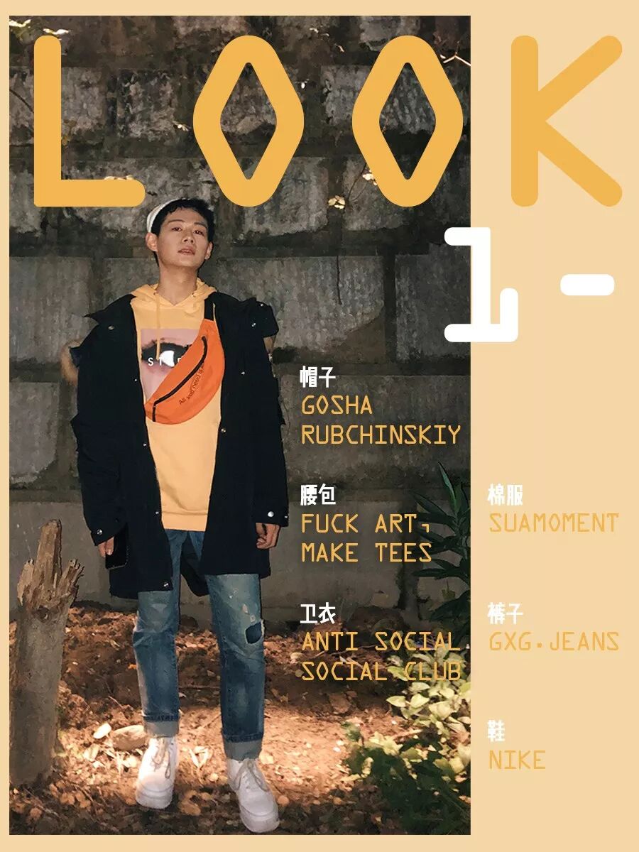 ASSC卫衣到现在依旧是我心中的最爱单品之一,在上篇穿搭推送里已经隆重介绍过,这里就不多赘述了。这套look里要着重介绍的是我头上这款Gosha Rubchinskiy冷帽,我爱豆李宇春同款嘻嘻