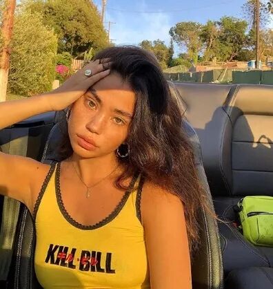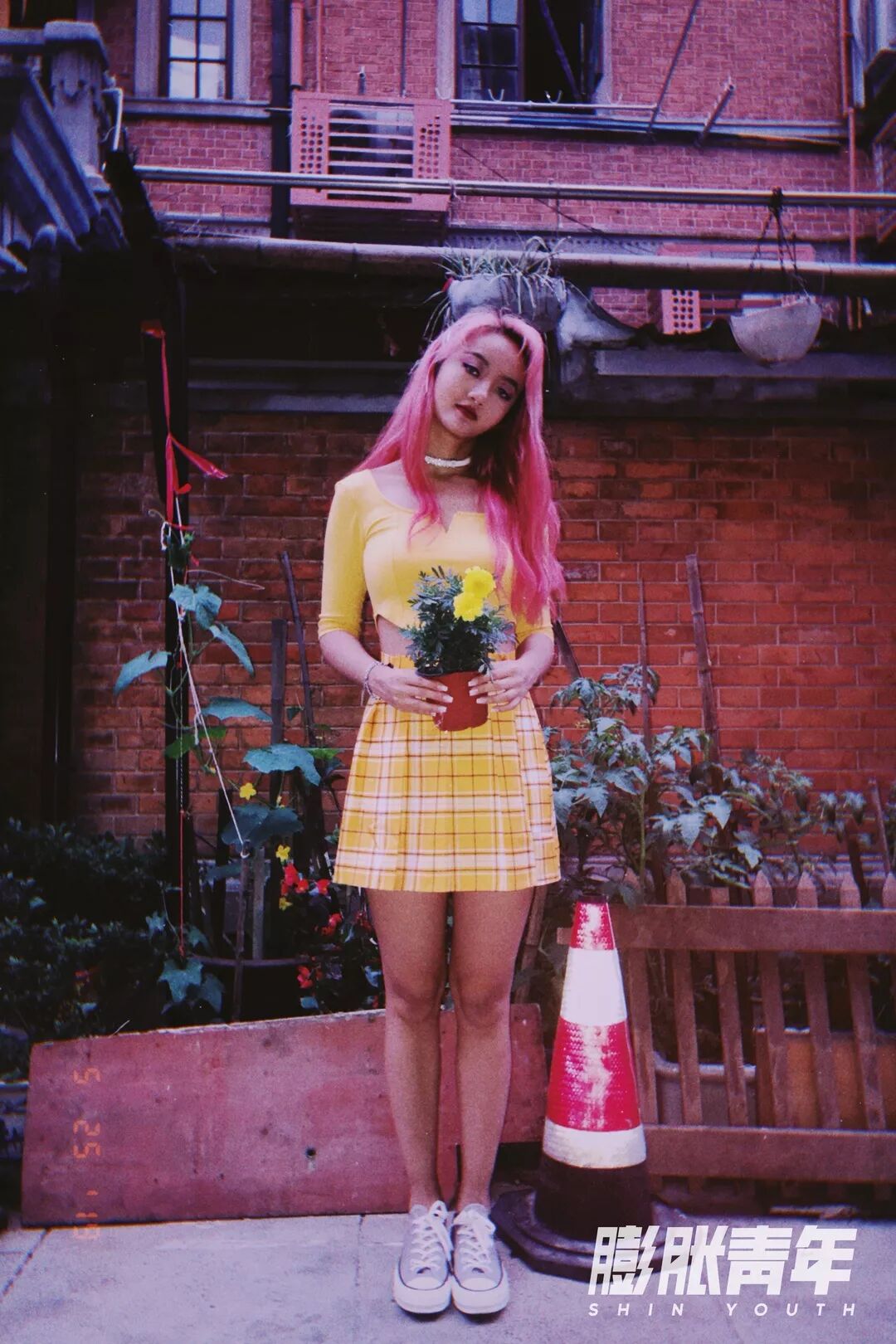 穿上不规则蕉黄短款Tee的卡卡