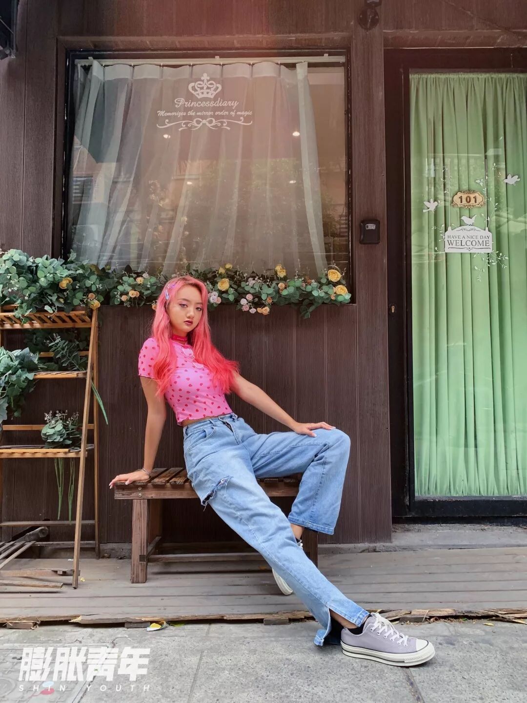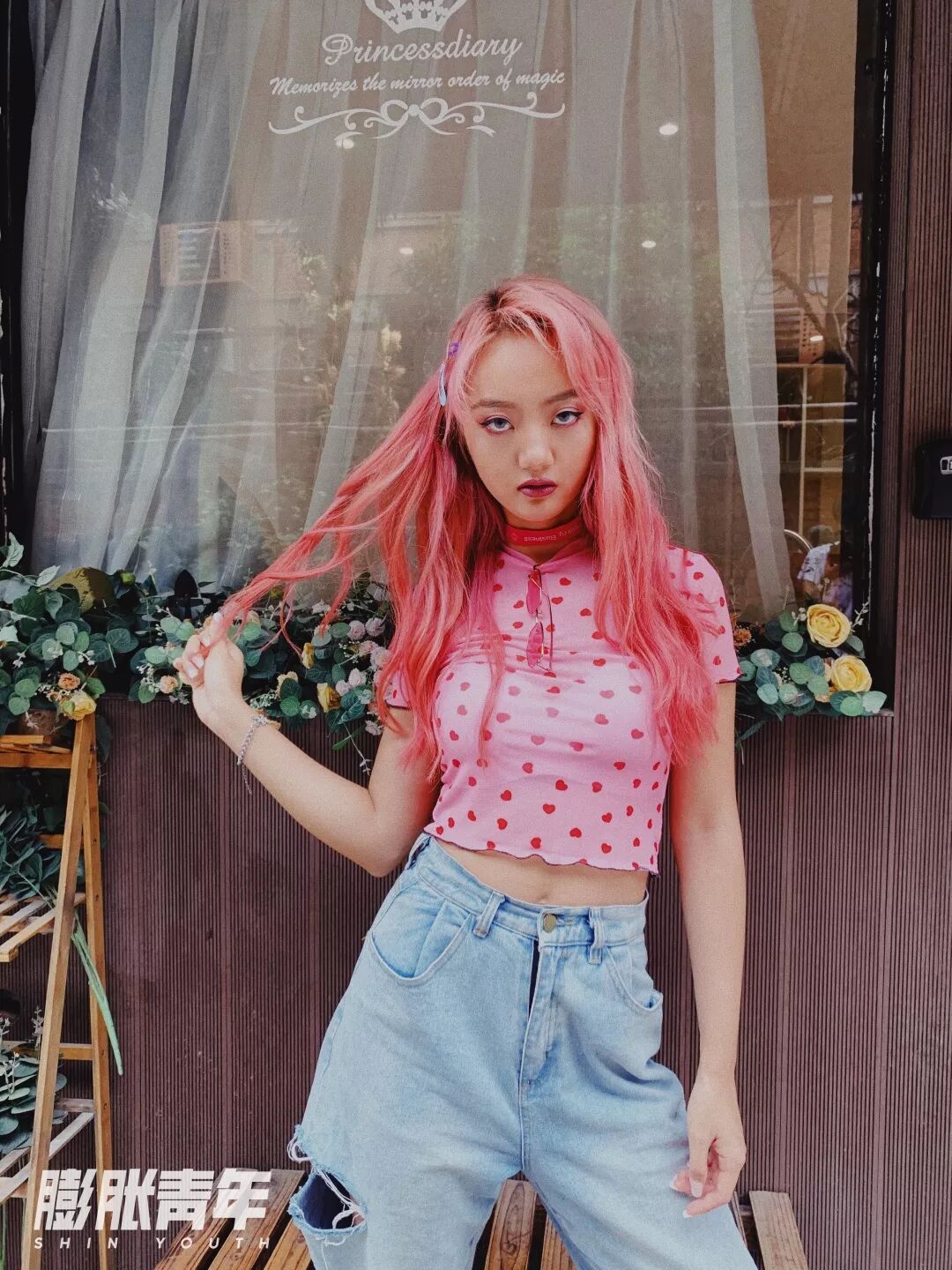 一头粉发也是让她吃遍所有