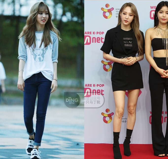 如果真的想穿 oversize ,一定要把身高撑起来、调高内搭腰线。文星伊这两套都穿了宽大西装外套,但效果是不是很不一样?