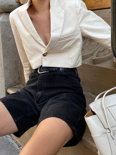 ▲ 短牛仔外套、短西装、短夹克等等,既能凸显冷感,又能调节比例,搭配利落下装就很挺拔了。