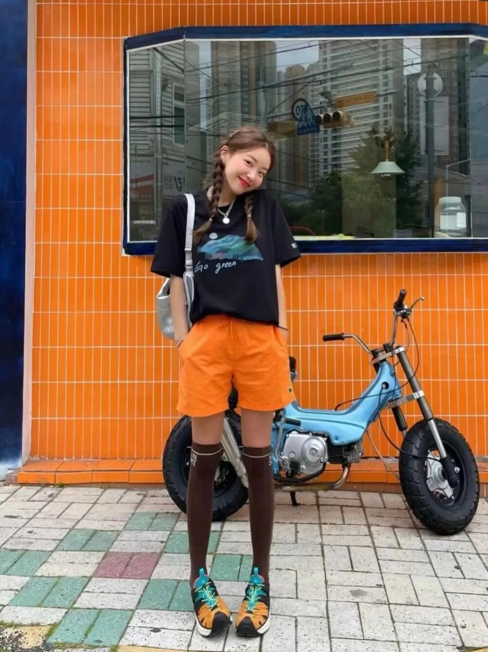 这位??欧尼可谓是小个子穿搭的参照模版。她属于是“宽肩大?、个子不高”的妹子。身材上也是是典型的亚洲人身材。