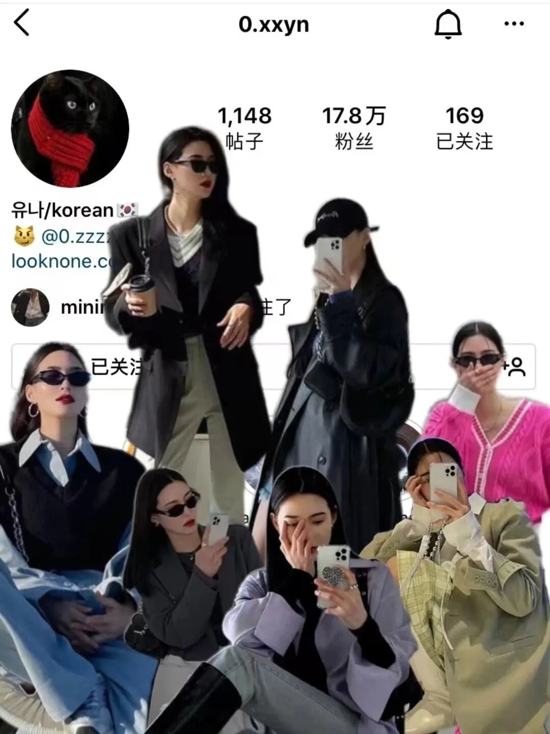 这也是一位来自??的欧尼,但是穿搭风格却和vivamoon完全不一样,vivamoon穿搭上偏甜美,有着一个邻家小妹妹的亲切感,0.xxyn(尤娜)却是韩系御姐范儿十足。