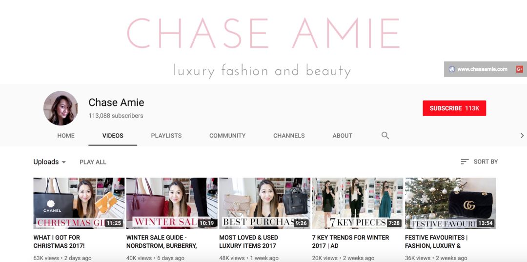 时尚博主,有自己的博客,频道视频也是只关于时尚服饰,风格欧美。