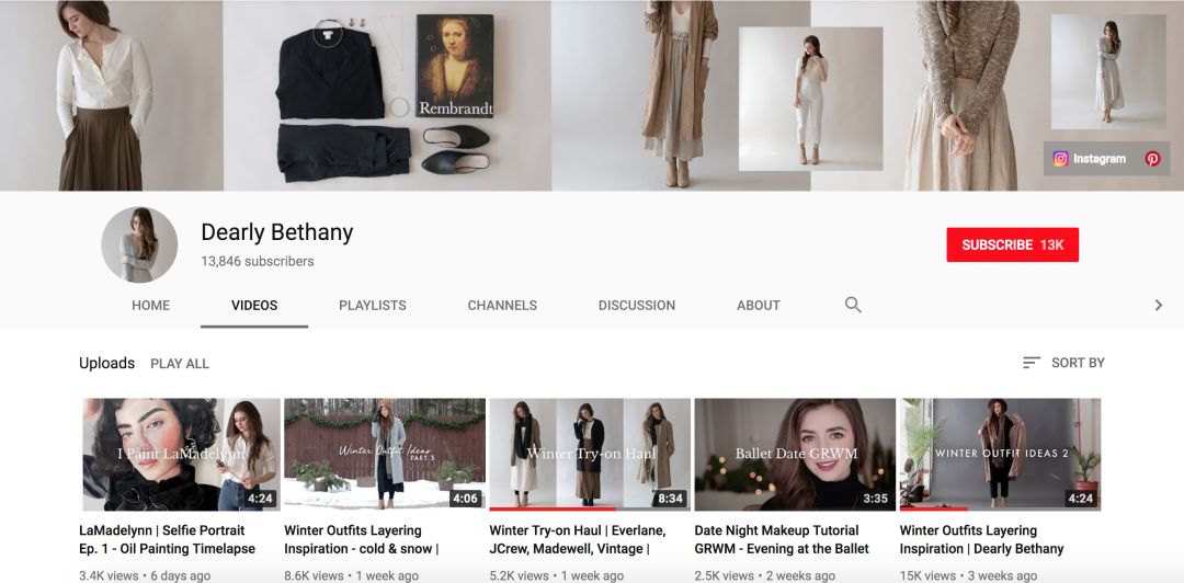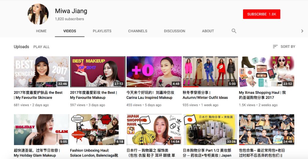 频道主攻生活类,时尚服饰的视频也比较多,风格偏欧美。