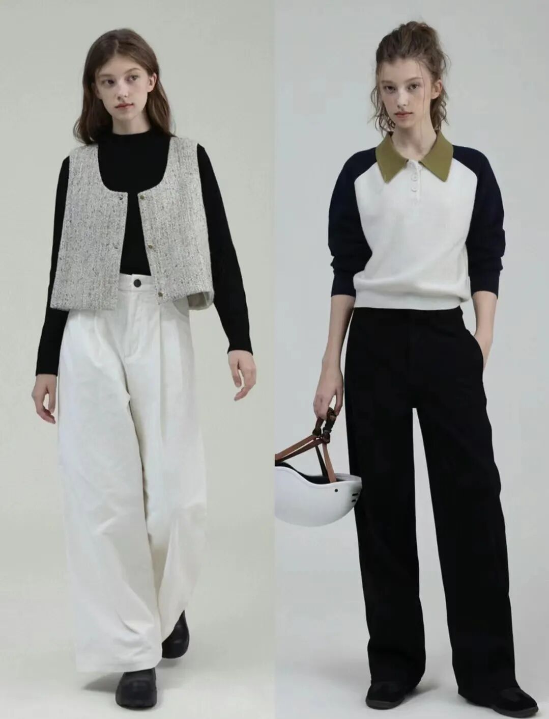 基础色搭配可以打造出简约、大方的造型;