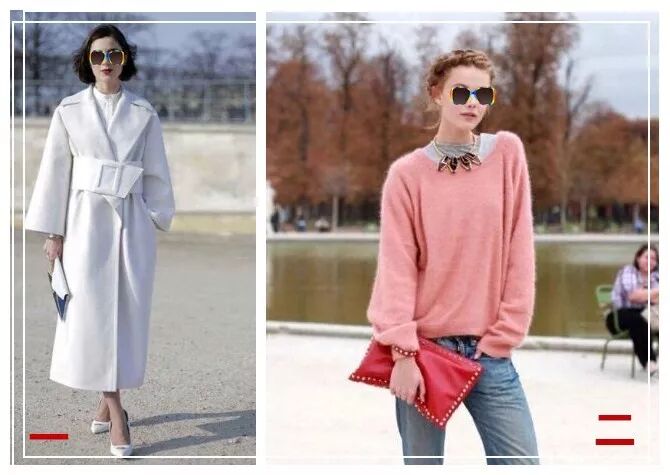 这个“叠加遮盖”穿搭法,也被称为“内浅外深”法。采用浅色系的服装作为内搭,外搭选择深色系,这样的穿搭法则,非常的时髦有个性。对于皮肤黄的妹子来说,没有什么比一身浅色系的内搭最重要了,至少不会暴露皮肤黄这个缺陷。