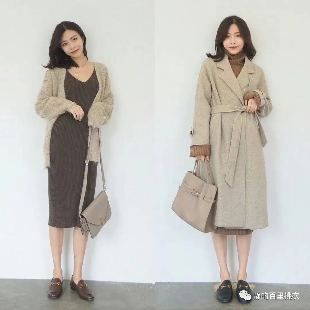 针织裙和针织衫的组合搭配也有很多种,不同的色系易搭配出不同的风格,米色的针织裙外搭玫红色的针织开衫,颜色轻柔,更突显出了女人的柔和感,也是很不错的居家穿搭。