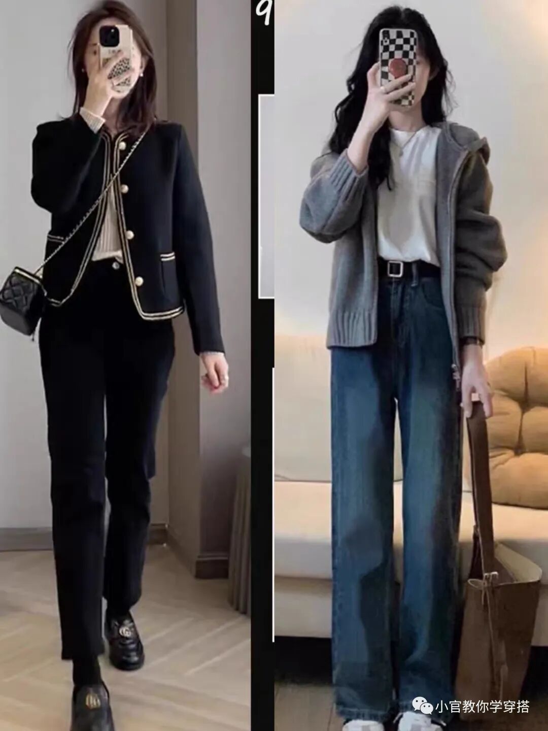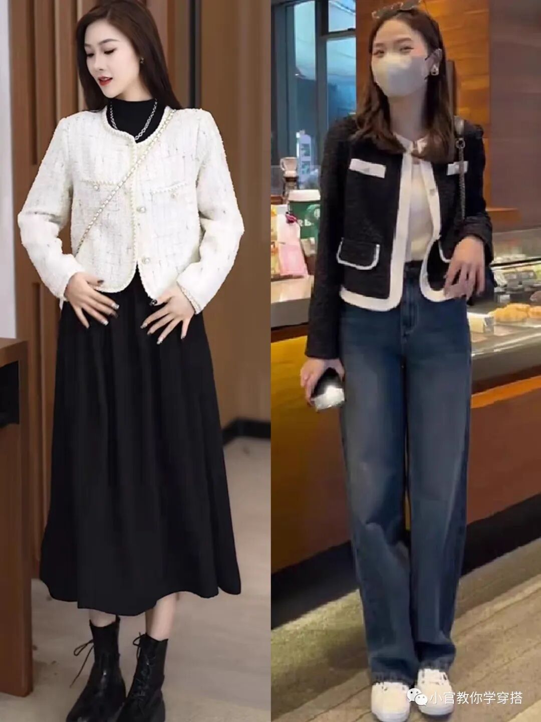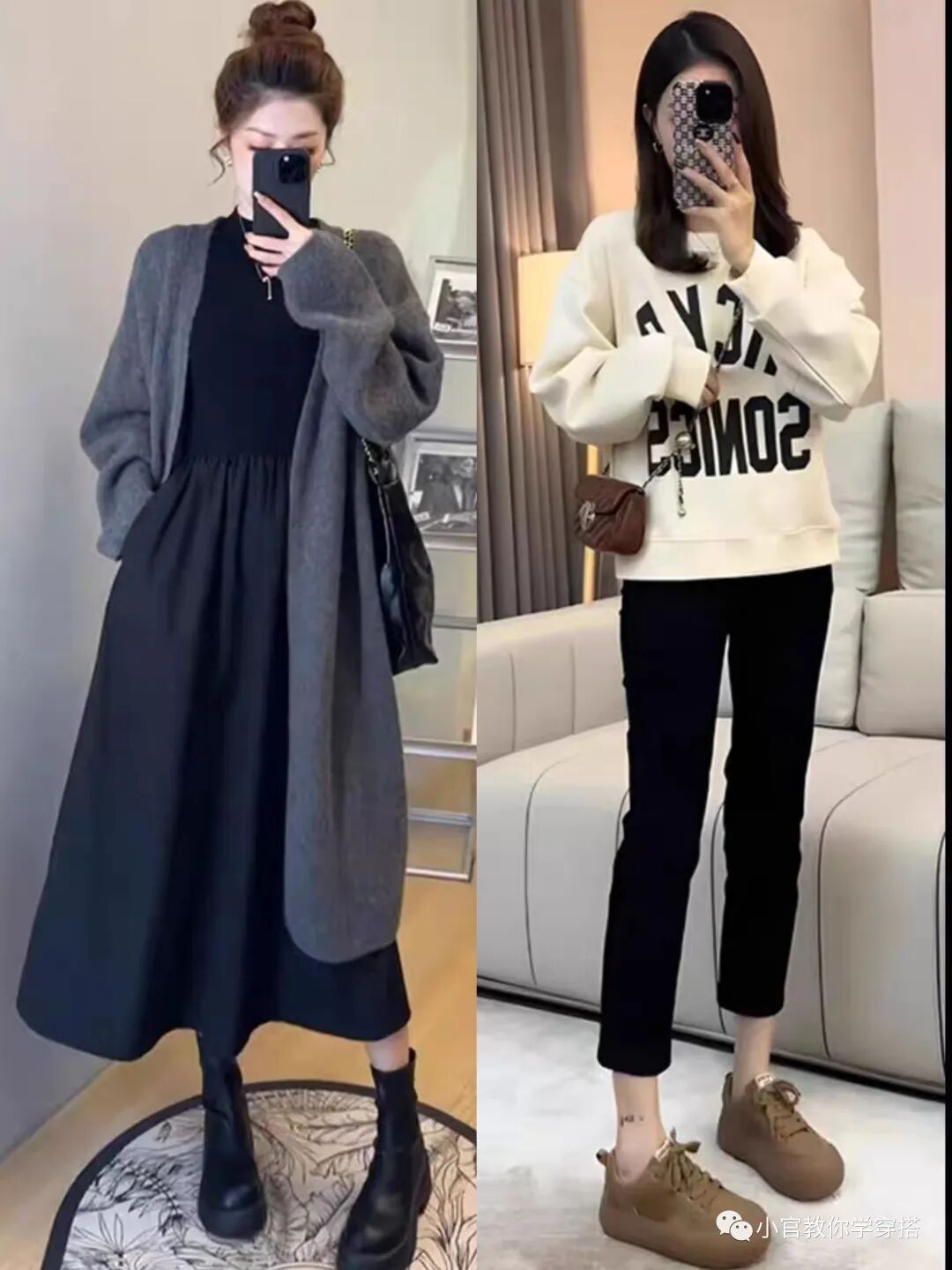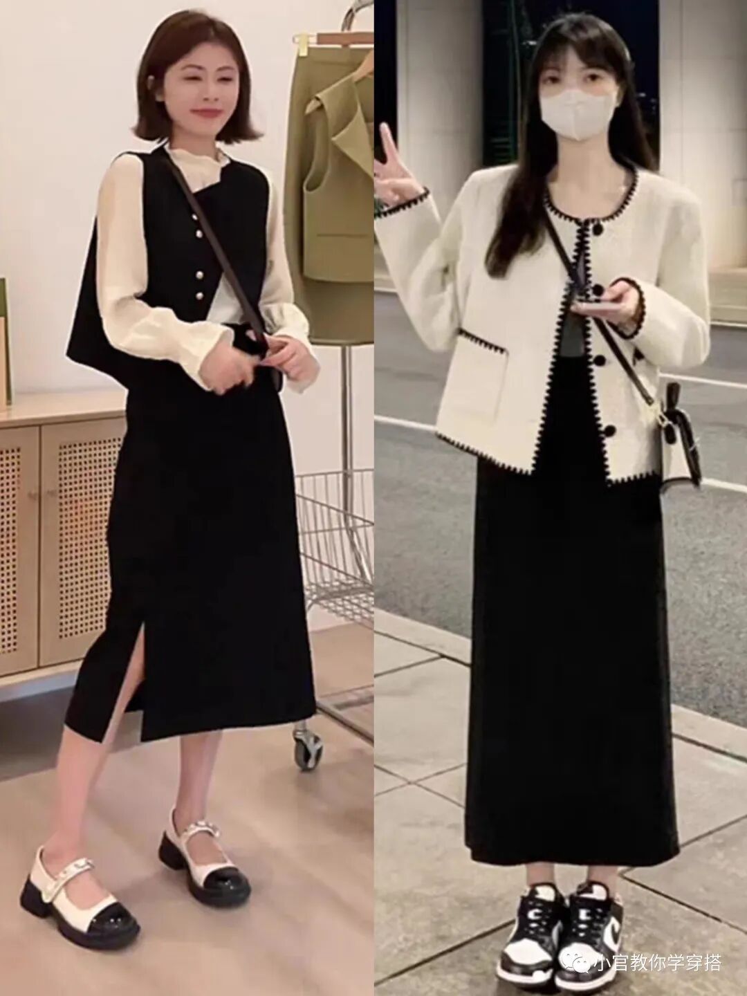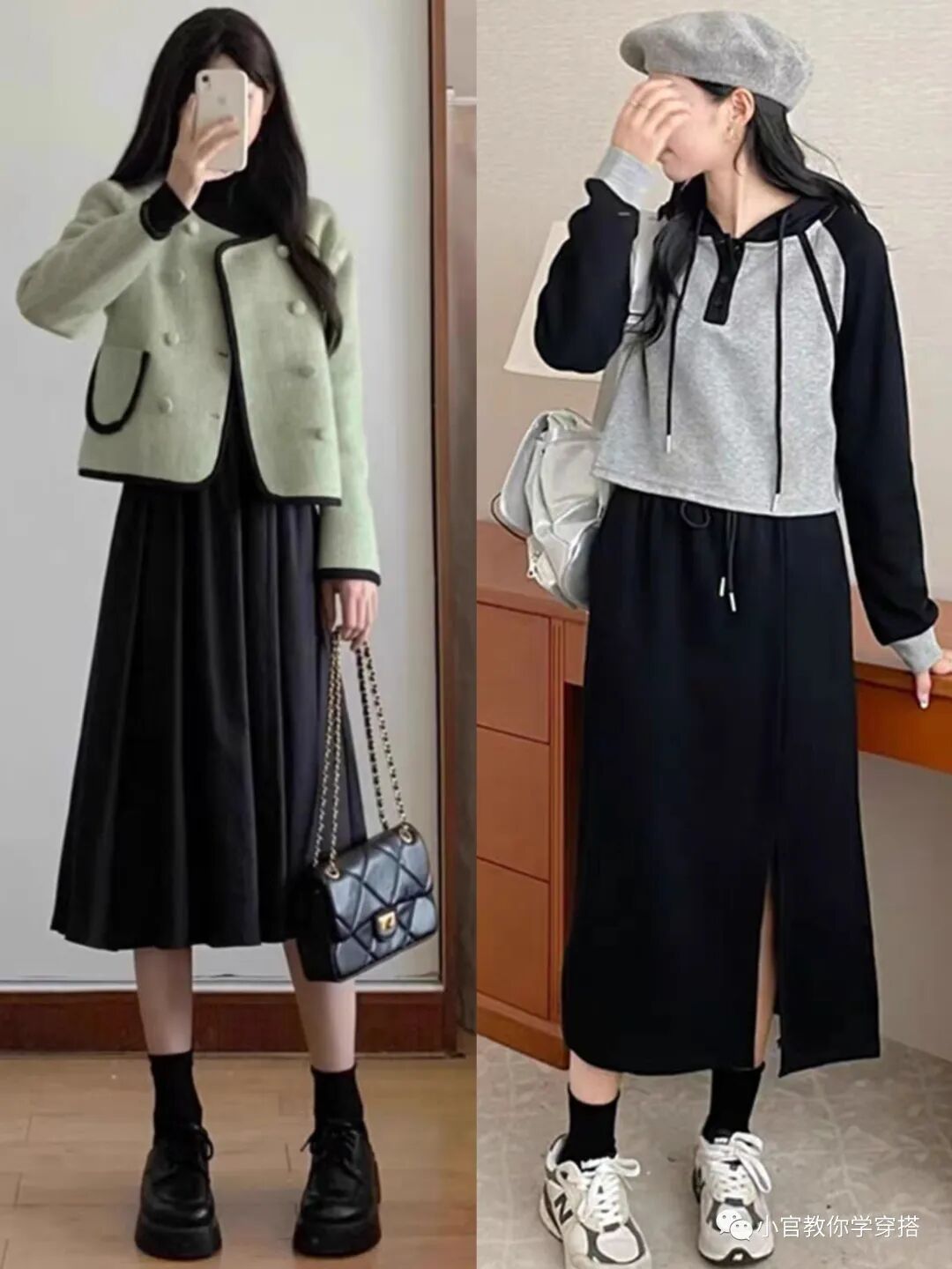 1. 毛衣+半裙:选择一款简约的圆领毛衣,搭配高腰设计的黑色半裙,可以打造出优雅的气质。同时,可以利用毛衣的宽松与半裙的紧身,形成对比,显瘦效果更佳。