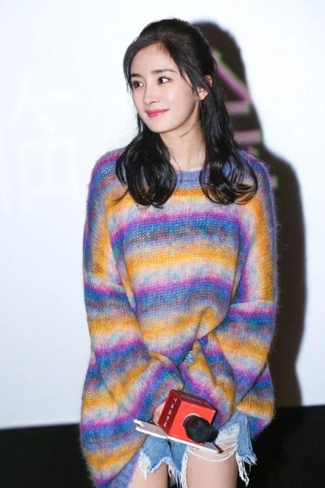 大幂幂对毛衣的执着简直惊人,犹记得她破洞毛衣搭配上破洞牛仔裤的样子,没有丝毫臃肿,帅气高挑。是大胸妹子的穿衣范本。