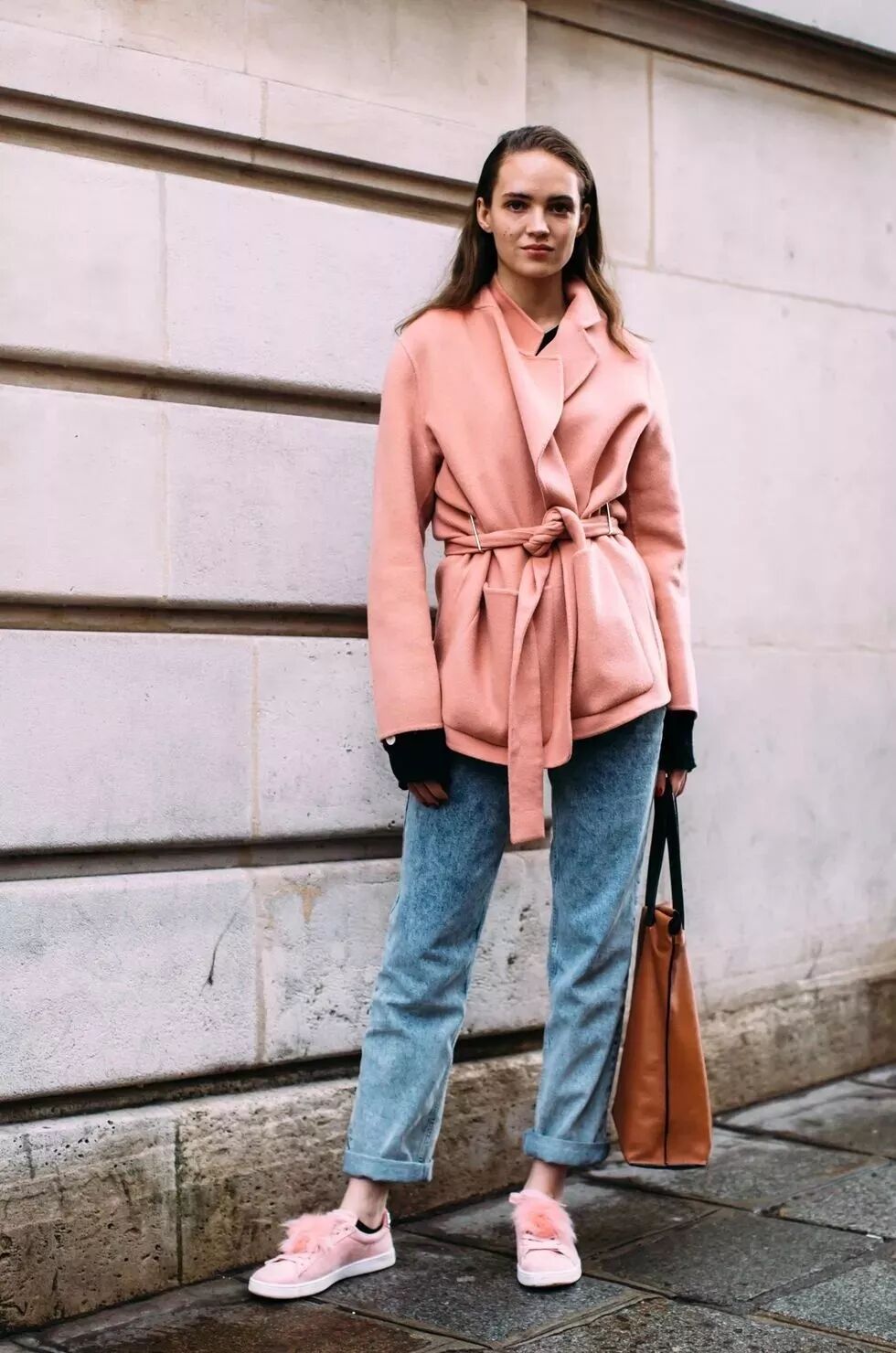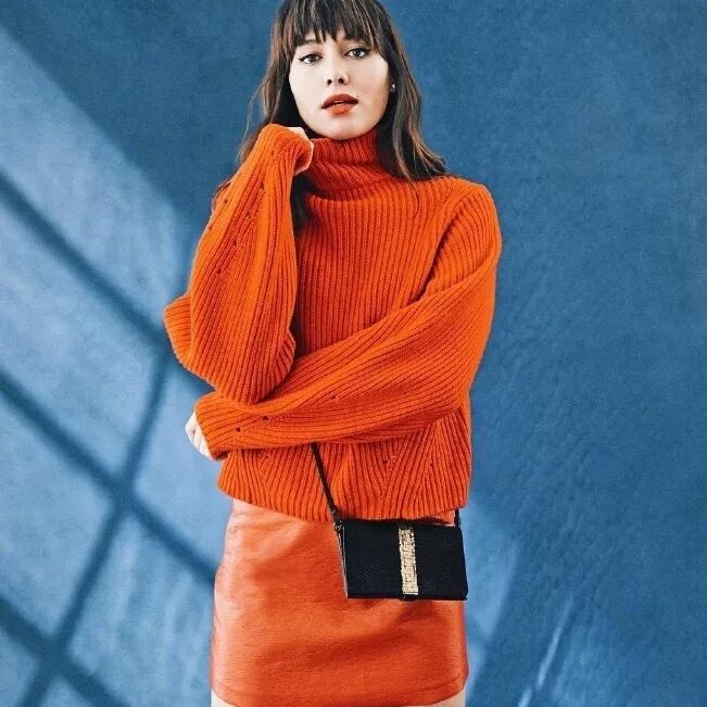 如果想在保留高级感的同时,增加一些温柔、温暖的感觉,不妨把outfit换成2019年潘通色珊瑚橙。