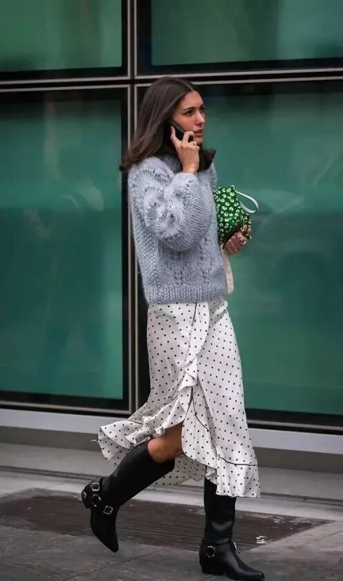 温柔的毛衣也是斩男单品之一,在下面搭一条轻盈的长裙就ok了,简直是毫不费力就能变得时髦可爱的重要法则。