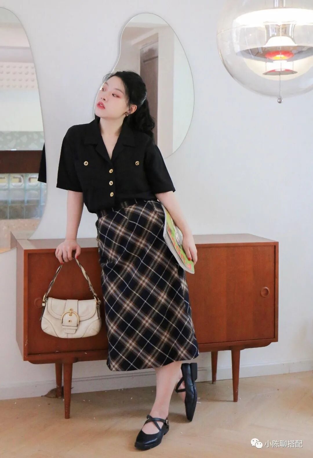 胡吃海塞造就的小肚腩可是贴身裙的克星,一些腰腹部过于紧身或是褶皱过多的款式的裙装都不适合胖女孩入手,这些款式无不是在凸显和加重赘肉的存在感。想要显瘦又仙气十足,就要隐藏起来自己的小肚腩,勾勒出身材的曲线。博主一花就经常穿搭高腰裙,既能隐藏小肚腩,还可以打造身材比例。