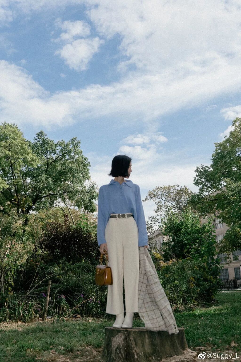 风衣JINGUS:http://t.cn/Ai3iXLSZ真丝衬衫Les Coyotes de Paris牛仔裤Trave(24):http://t.cn/AimzAg8F老爹鞋Maje:http://t.cn/Ai3iXLar包Burberry中古 // Look 3 这套是一套蓝色不同色调的搭配,我最近真的太爱蓝色了!牛仔外套的蓝色最浅,内搭半高领其次,阔腿裤则是最深的海军蓝。