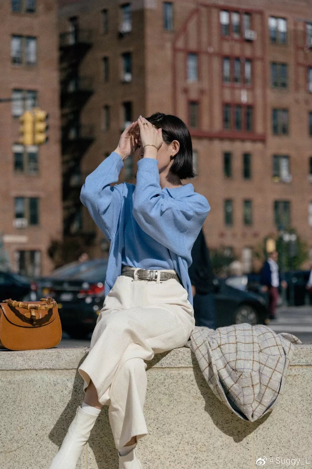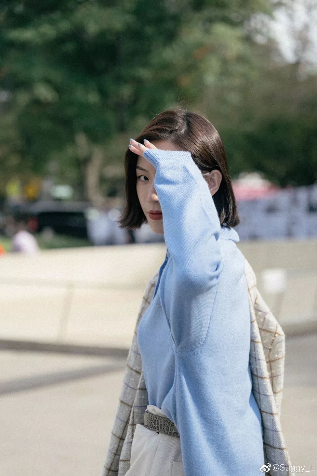 包包搭配的是银灰色的腋下包,算是一个不同色调但是是比较接近的冷色调。 fill=%23FFFFFF%3E%3Crect x=249 y=126 width=1 height=1%3E%3C/rect%3E%3C/g%3E%3C/g%3E%3C/svg%3E)