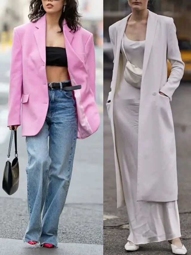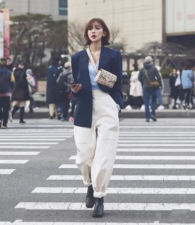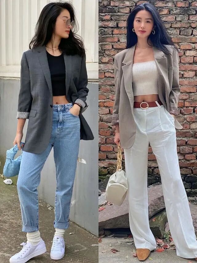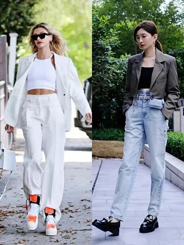 不少女生表示,将西装外套与风格独特的内搭进行混搭,能够打造出别具一格的时尚造型。这种搭配方式不仅可以打破西装的沉闷感,还能为整个造型增添一份独特的风味。