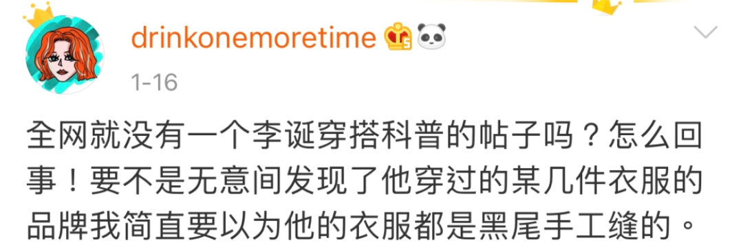 去年关店之后,你说李诞上节目穿的那些设计感的衣服,能没有黑尾酱的审美在里面?