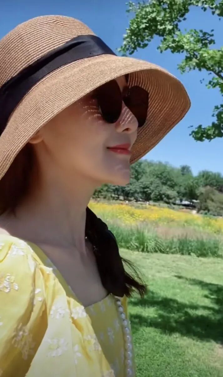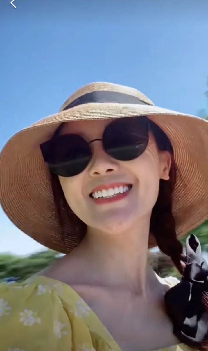 甘薇穿衣有窍门,黄色碎花衫搭草帽麻花辫,减龄十岁都不止