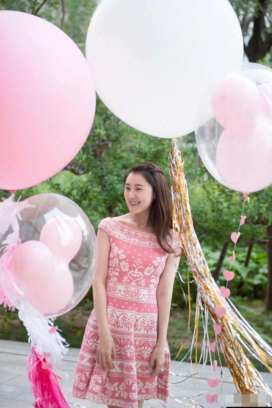 穿粉色裙装要掌握技巧,才能够不过分甜腻且具有减龄效果,甘薇所穿的这件粉色裙子就没有过于繁复的层次感,搭配上优雅的白色印花图案,能够冲淡粉色的甜美气息,制造出更为优雅温和的美感效果,甚至还带着点波西米亚风情,高级感也随之而来。