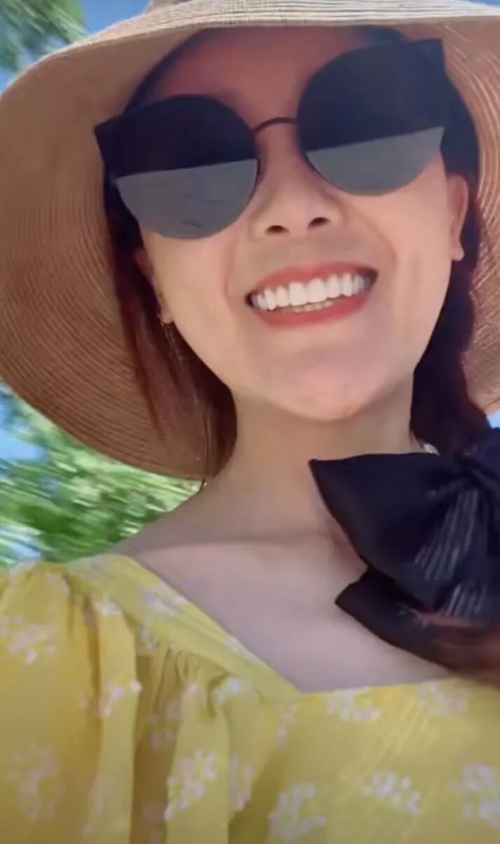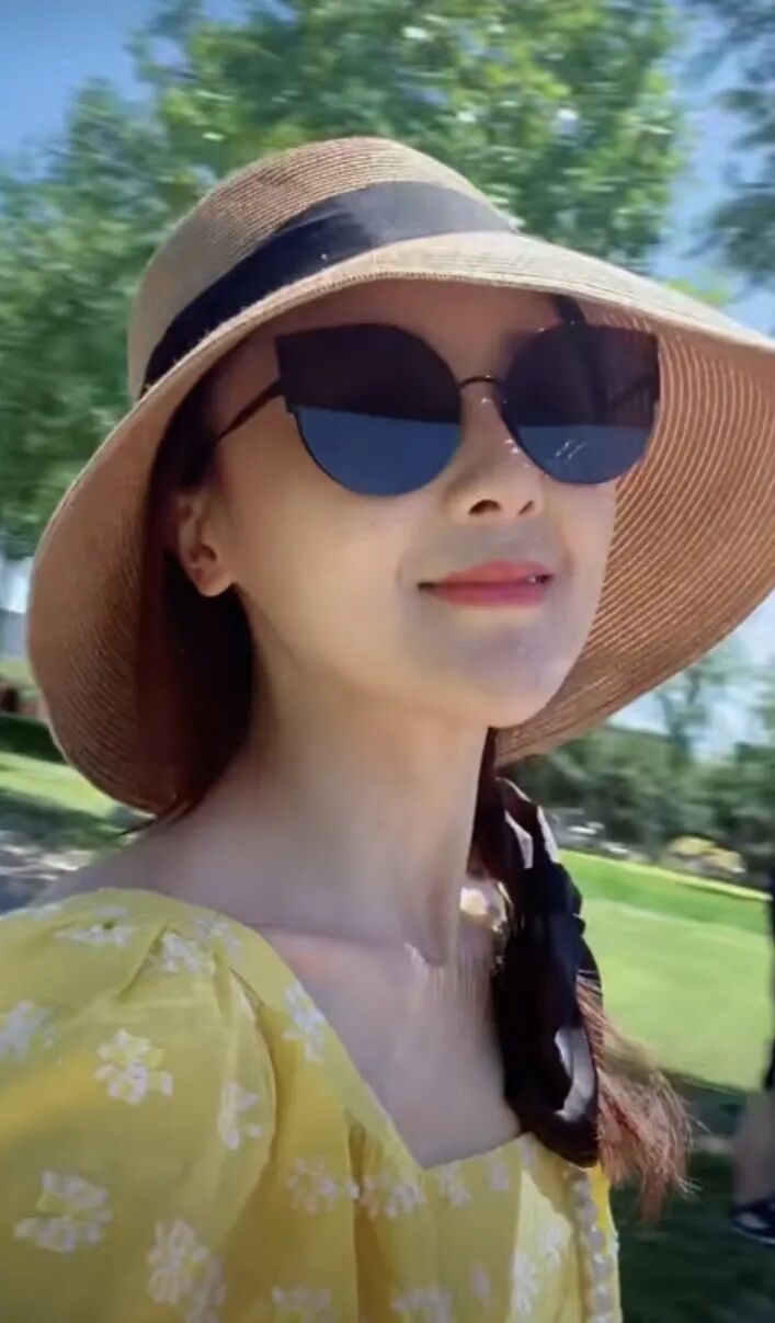 甘薇穿黄色碎花衣嫩成少女,草帽搭麻花小辫时髦又洋气