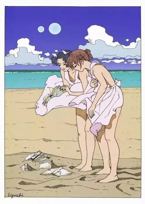 虽然近年来已经退居二线的江口在广告与插画领域仍比较活跃,很多年轻人都是通过美少女插画认识他的, 但远在80年代初的时候,江口是以搞笑漫画巨星而被大家熟知。