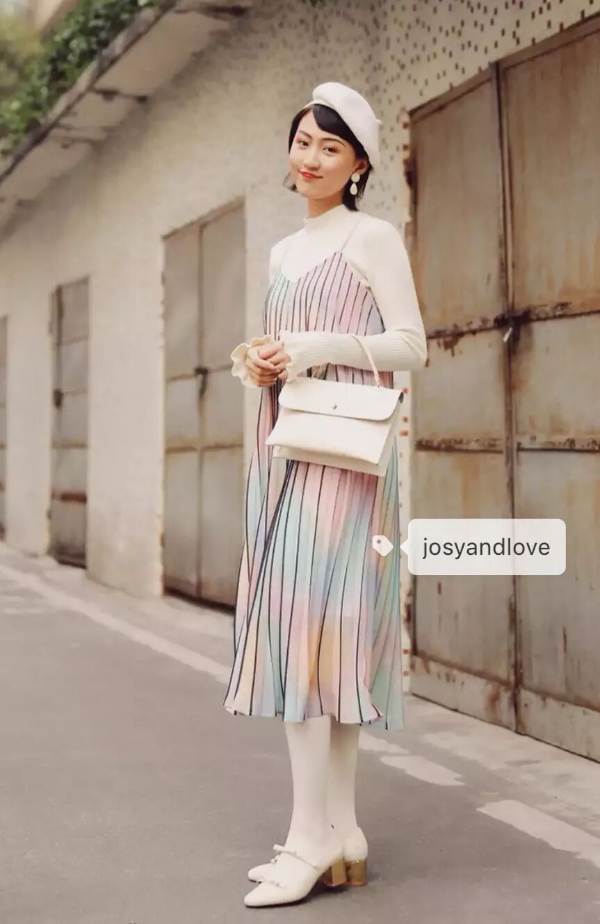 撞色+叠穿也是早早被美少女们穿上身!