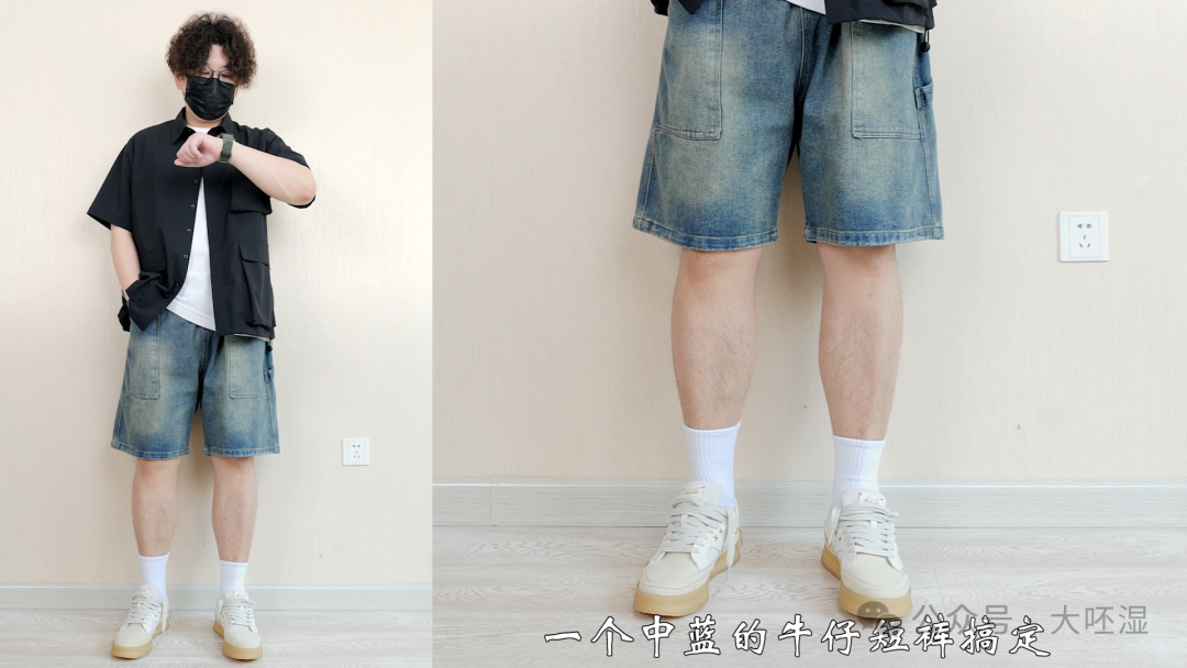 裤子:FEAROM 水洗伐木牛仔短裤