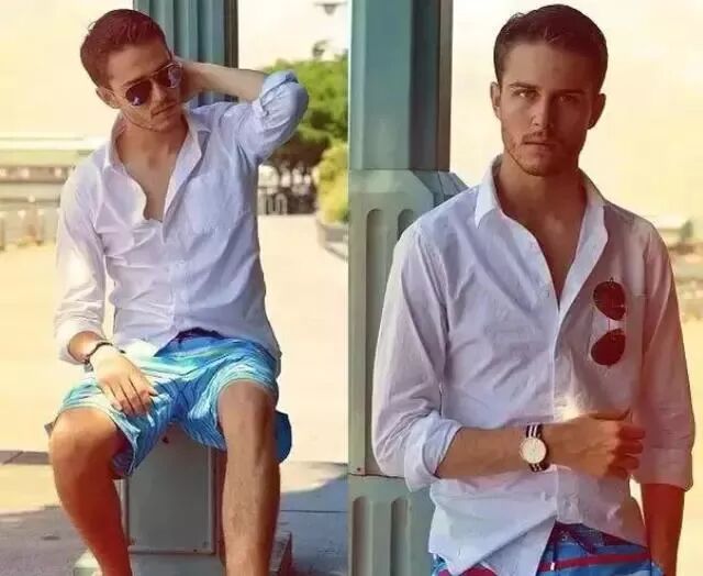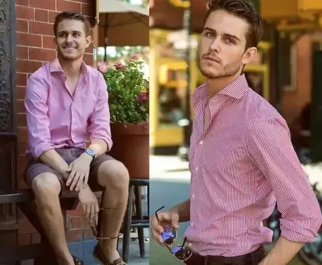 17.“粉色衬衫加短裤,最经典暖男搭配!
