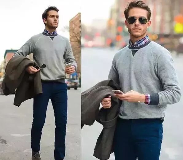 3.一般女生都很喜欢这种男士套头衫里搭格子衬衫的style,显得比较儒雅有气质。建议选择套头衫的时候一定要挑材质精良的,Kashmir(羊绒)是首选。