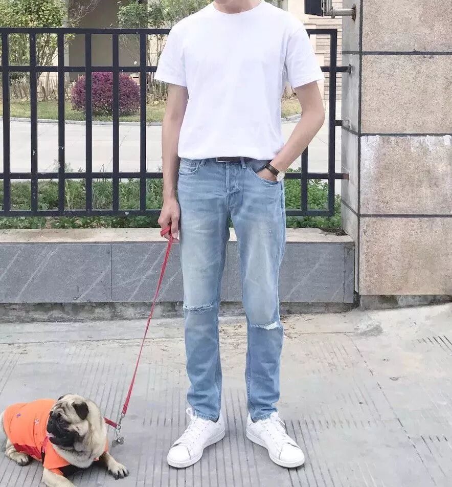 纯色短袖T是每个男生夏天必备的单品。想要成为“小奶狗”男友,还是首先推荐纯白或者较浅的颜色。