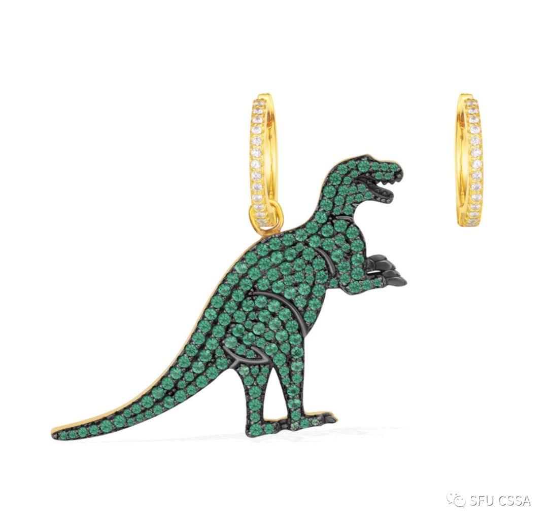 不对称金黄色纯银镶薄荷绿晶钻恐龙耳环