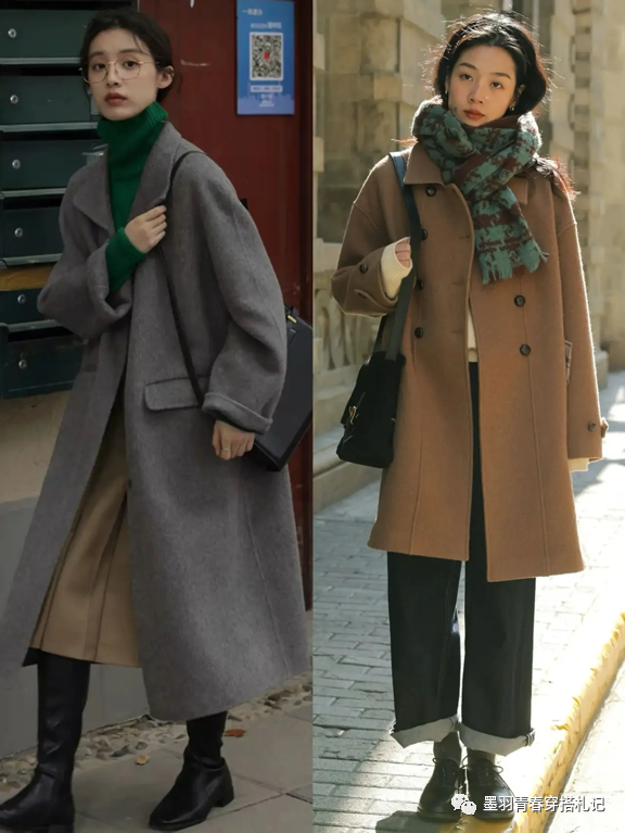 小个子的姐妹在搭配大衣时要注意版型的选择,与此同时内搭方面也要注意尽量轻薄简洁,也可以加入复古风格的羊绒帽子、短靴、以及半裙来凸显华丽的氛围哦。