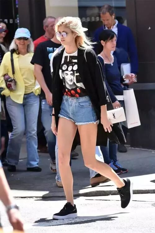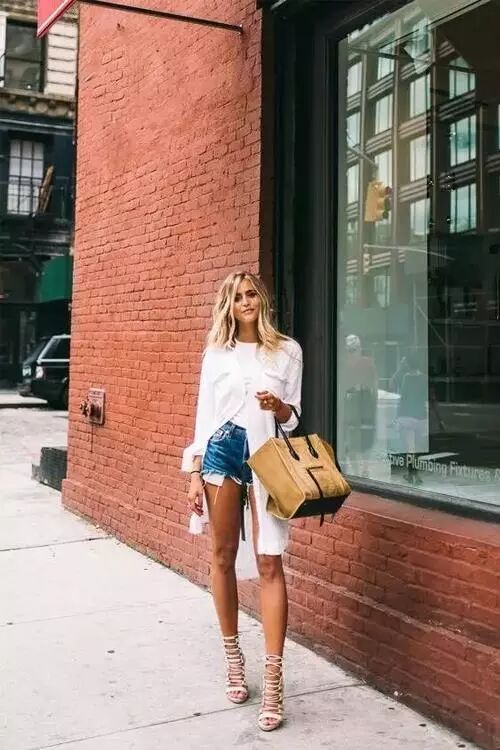 长衬衫配上超短裤,在视觉上拉长了腿的长度,大长腿就是你啦。