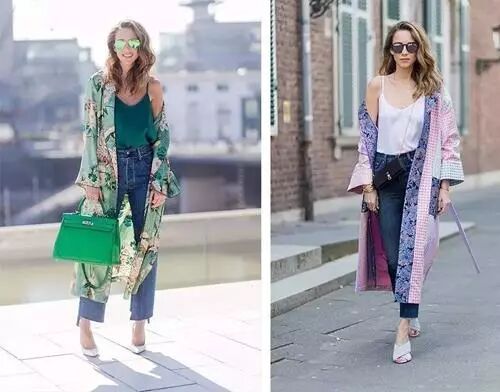除了真丝睡袍风, 今年还很流行"东瀛风",和服印花开衫就在春夏秀场上屡见不鲜▼