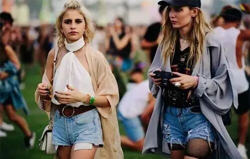 牛仔短裤搭配摇滚T恤,穿上印花防晒开衫,加一顶巴拿马帽,好有度假的波西米亚风情。