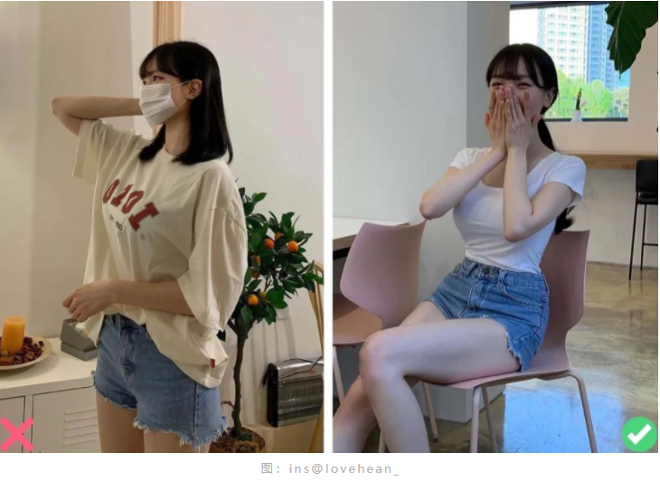圆领很大程度上对着这种身材的女生不是很友好,看起来会有点壮硕。